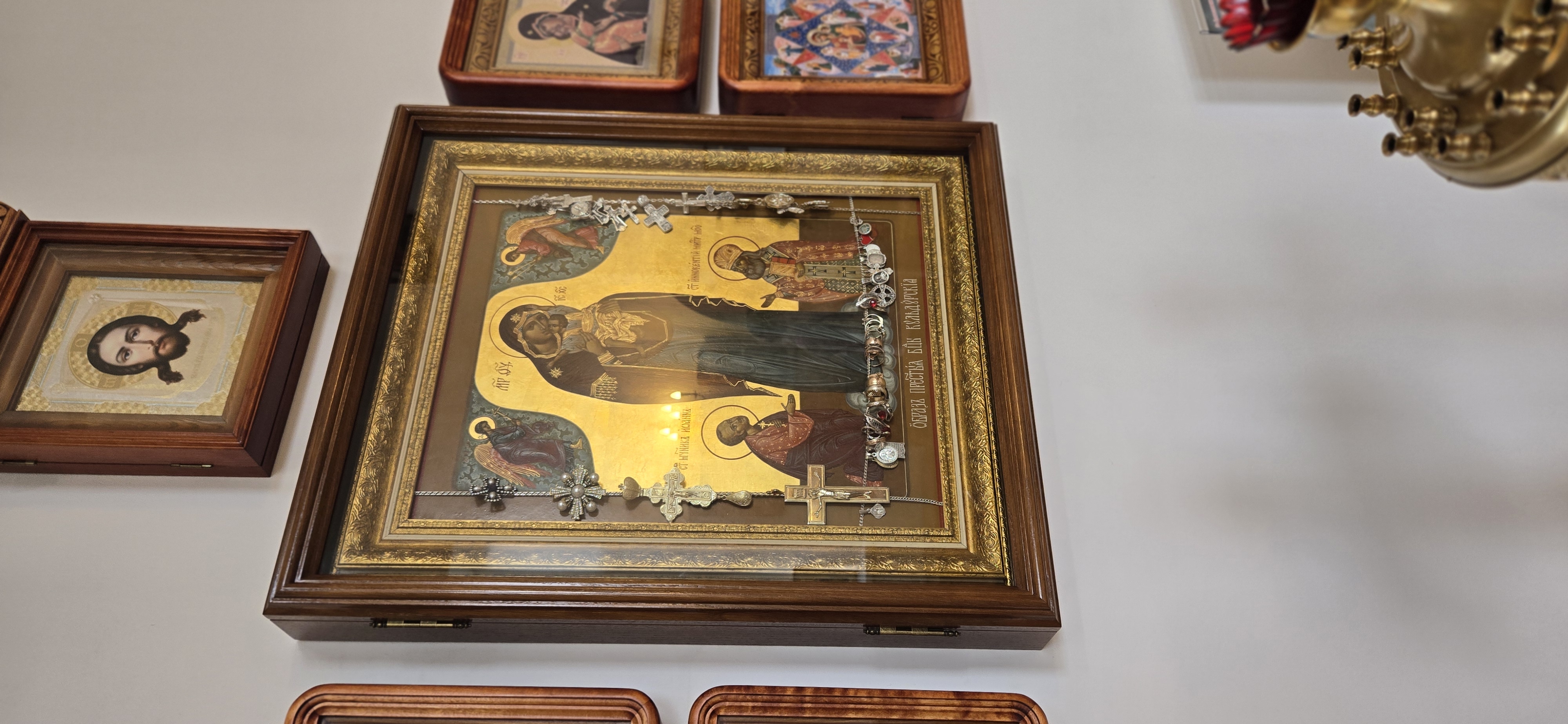 Так же в нашем храме находится образ великомученика и Целителя Пантелиимона (подаренный храму от правительства Еврейской автономной области в день освящения храма) в который вставлена частица Святых мощей великомученика Пантелиимона великодушно переданная в дар нашему храму митрополитом Митрофаном Мурманским и Мончегорским.